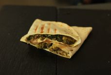 200г • кукурузная тортилья, брокколи, авокадо, сыр твёрдых сортов, сок лимона, чеснок, перец, соль